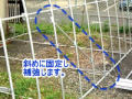 斜めの柱がゆがみを押さえ、しっかりしたハウスにします。直管のつなぎ部分をまたぐことで「割れ」を防ぐことができます。