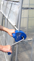 そのストロングハウスの堅牢な骨組みに、高耐久0.15ミリ厚POフィルムと巻上換気構造を加えました。